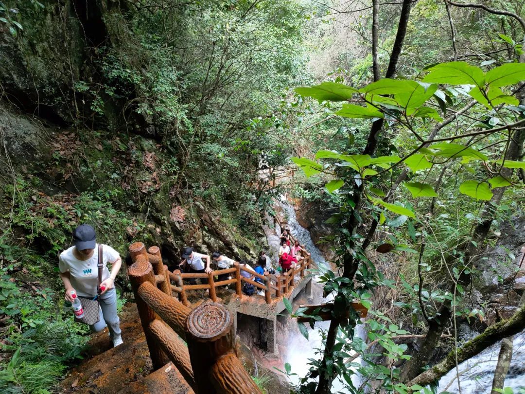 工作中的馮文新(右二) “當時我就下定決心,一定要讓鄉親們過上好日子。”回想起1994年剛回到家鄉時的情景,馮文新目光堅定。那時的源頭村,是邊遠貧困村。他憑著軍人的韌勁,從村團書記、支委干起,一干就是三十年。為了打破發展瓶頸,他們帶領村民向貧困發起“攻堅戰”,多方籌措資金超千萬元,率先在全鄉建成“四好公路”,打通了發展的出路。 路通了,如何走穩致富路?源頭村坐擁7000多畝天然林和連綿5000余米的“飛龍瀑布群”。“這山水是老祖宗留下的‘金飯碗’,我們得端穩了。”馮文新說。在他的推動下,生態保護被寫入村規民約,“不砍樹也能致富”成為共識。村里不僅獲評全國森林康養建設試點,還保護下一片珍貴的省級野生古茶樹種質資源。他們修葺瀑布步道、完善旅游設施,讓“飛龍瀑布”成為鄉村旅游的金字招牌。昔日的貧困村,如今已是年接待游客超2萬人次的省級金牌旅游村。